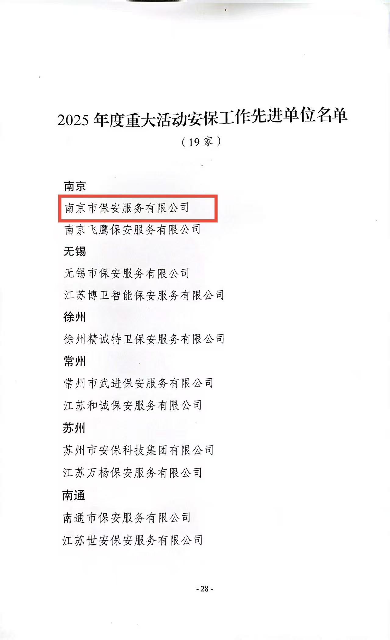 喜報(bào)!南京市保安服務(wù)有限公司榮獲“2025年度重大活動(dòng)安保工作先進(jìn)單位”稱號(hào)